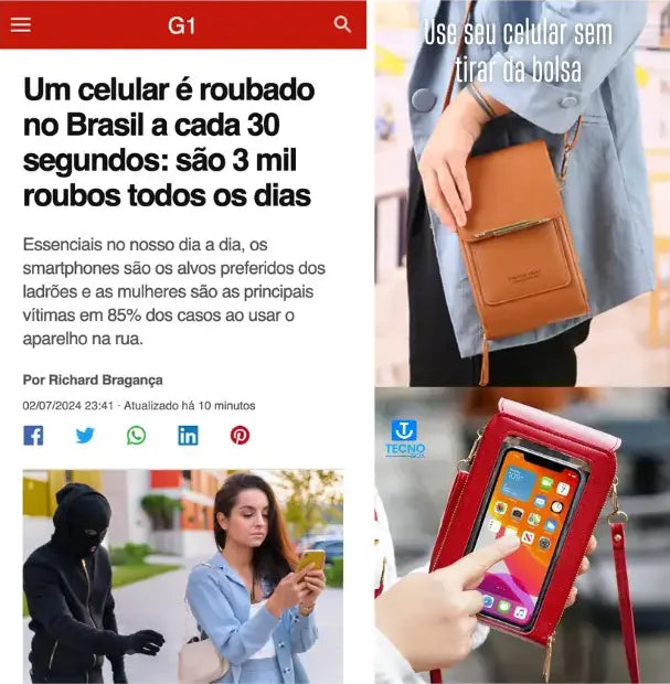 Compre agora sua bolsa para celular com Touch Screen. Ideal para festas, shows e baladas esta bolsa mantém seu celular acessível sem precisar tirá-lo da bolsa.